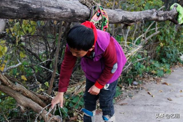 由于小金峰病情的影响,让他意识不清,四肢不协调,经常乱跑乱撞,摔得一身伤。何国秀根本抓不住孙子,经常一个不注意孙子就会跑出去。怕孙子出现意外受到伤害,无奈之下,何国秀只能狠狠心用绳子把孙子绑在床栏杆上,或者拴在门口的树上。图为拴在树上的小金峰。