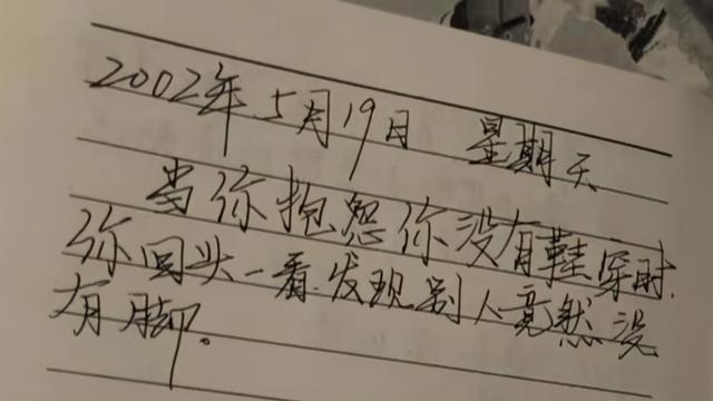 每翻一页,过往的伤疤又一次被血淋淋地揭开。突然一句话映入他绝望的双眼:“ 2002年5月19日,星期天,当你抱怨你没有鞋穿时,你回头一看,别人竟然没有脚。”