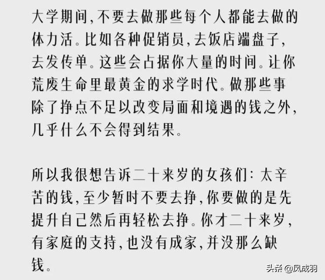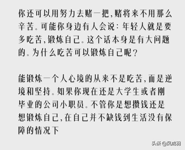 普通家庭出来的孩子,学业上如果不对自己狠一点。到时候,生活这堂课自然会从上至下,从择偶范围到就业前景,从医疗保险到自已孩子的读书生存环境到养老住宅,有数不尽的鲜明的对比方式,世界会清醒教会你什么是优胜劣汰,怎么做人。