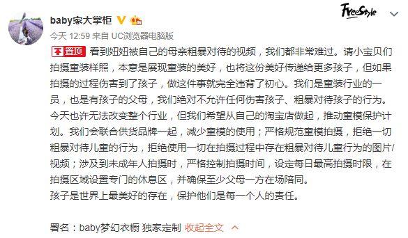女童模妈妈致歉