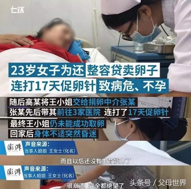 她被带到捐卵中介处,辗转三家医院,连续打了17天的催卵针,用自己的健康换回了所谓的“报酬”。