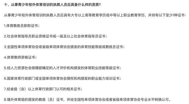 在《北京市青少年校外体育培训机构设立审查工作指引(试行)》(以下简称《工作指引》)中,对青少年校外体育培训机构的举办基本条件、专业人员配备及资质、培训场地和设施、培训内容管理制度等都作出了明确规定。