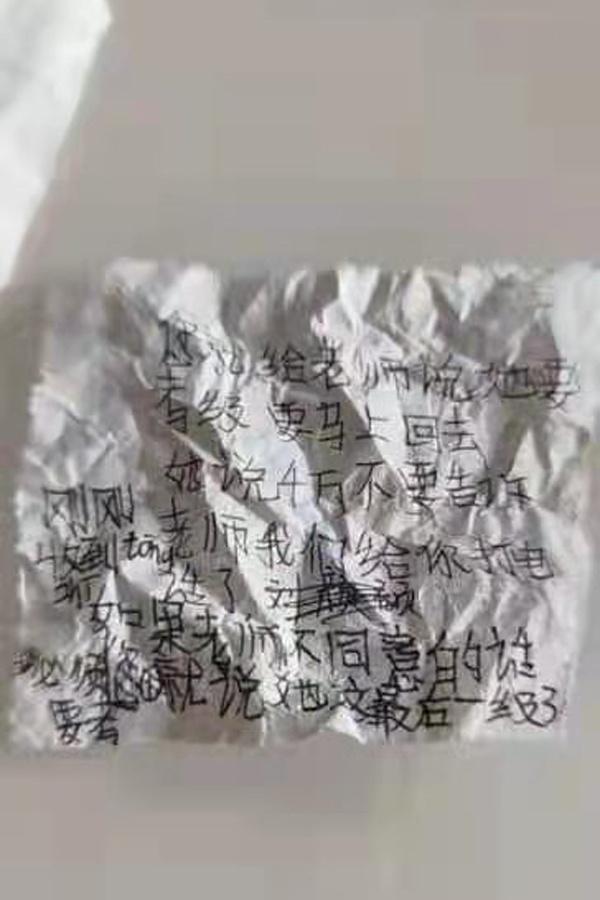 有孩子写纸条向外界求助联系家长