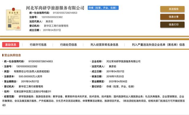 河北军尚研学旅游服务有限公司的工商注册登记信息